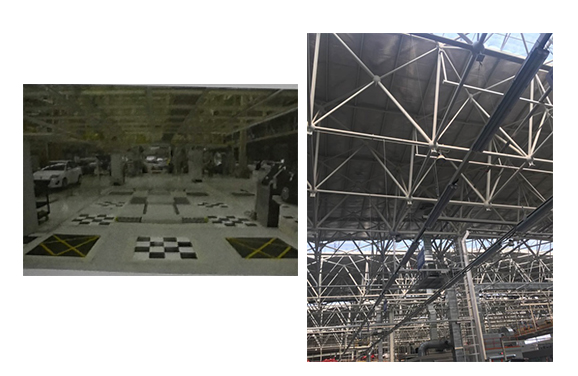 全景環(huán)視影像系統(tǒng)攝取車輛四周景物并通過控制器將四周景物合成一幅360°的全景圖,顯示效果類似從車輛上空俯拍的影像。全景影像拼接的精確程度將直接影響用戶的體驗。攝像頭和車輛在加工和組裝過程中,都可能與設(shè)計值產(chǎn)生偏差,這些偏差會導(dǎo)致全景影像的效果。全景環(huán)視影像系統(tǒng)的整車下線標(biāo)定就是為了根據(jù)實際車輛進行標(biāo)定以保證全景影像的效果。標(biāo)定系統(tǒng)由標(biāo)定主控系統(tǒng),車輛擺正器,標(biāo)定板,工藝照明設(shè)備組成。
