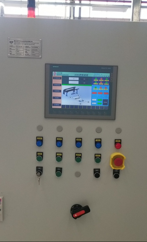 校準(zhǔn)過程是確定車載攝像頭的三個方向角(相對于車的行駛方向)和攝像頭的安裝高度(相對于車輛的輪胎接觸面)。這個校準(zhǔn)過程是一種電子調(diào)節(jié),攝像頭不需進行機械調(diào)節(jié)。設(shè)備系統(tǒng)由擺正器、標(biāo)定設(shè)備、標(biāo)定板、標(biāo)定診斷儀、PLC控制柜、LCD顯示屏組成。