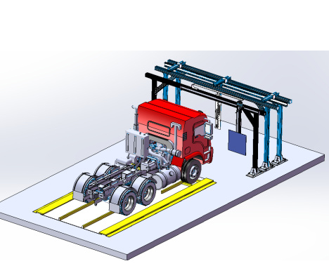設(shè)備軸距可調(diào),在車身進入校準(zhǔn)工位前,通過掃描隨車文件上的車型VIN條碼識別車型信息并自動調(diào)整軸距。