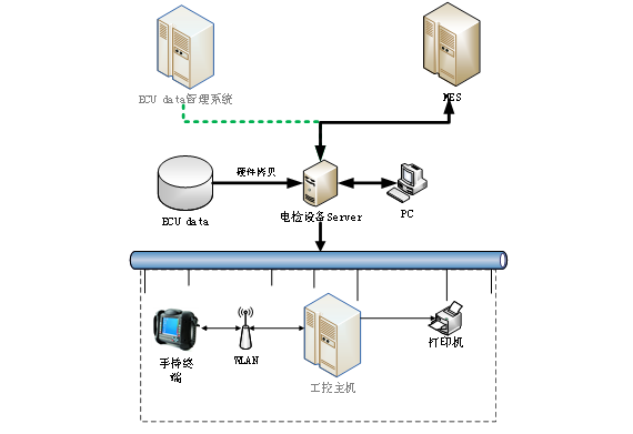 ? 具備OBD插頭,實現(xiàn)與車載ECU通訊,滿足電檢需求,內置VCI卡,可根據(jù)產線規(guī)劃要求,實現(xiàn)各種控制單元刷寫、配置、診斷、標定等功能。